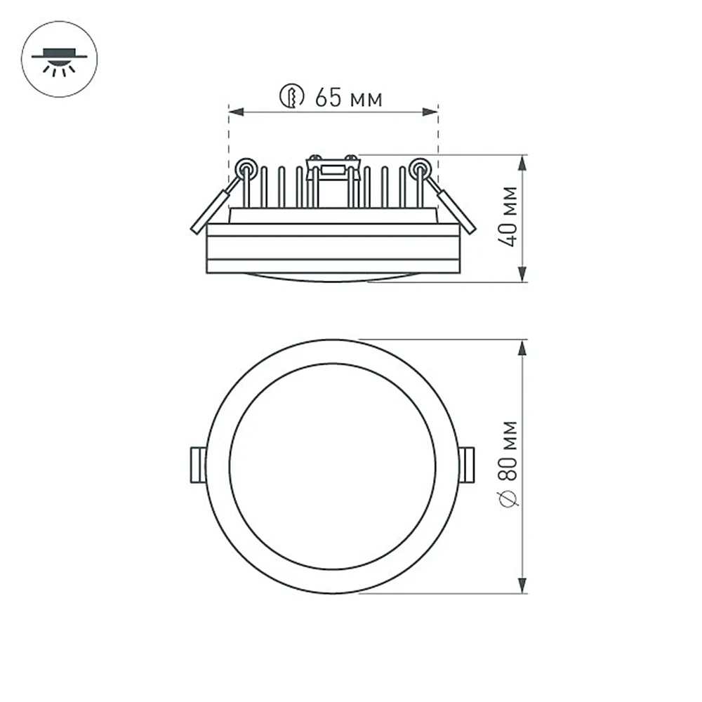Круглый светильник с контурным свечением. Корпус IP44 белый + вставка поликарбонат PC. Цвет БЕЛЫЙ ТЁПЛЫЙ 3000К, св.поток 400 лм, угол 120°+180°. Питание 180-240VAC (драйвер в к-те 300mA 11-25V), мощность 5Вт. Размеры 80х40 мм, установка в отв.65 мм, высота мин.40 мм.
