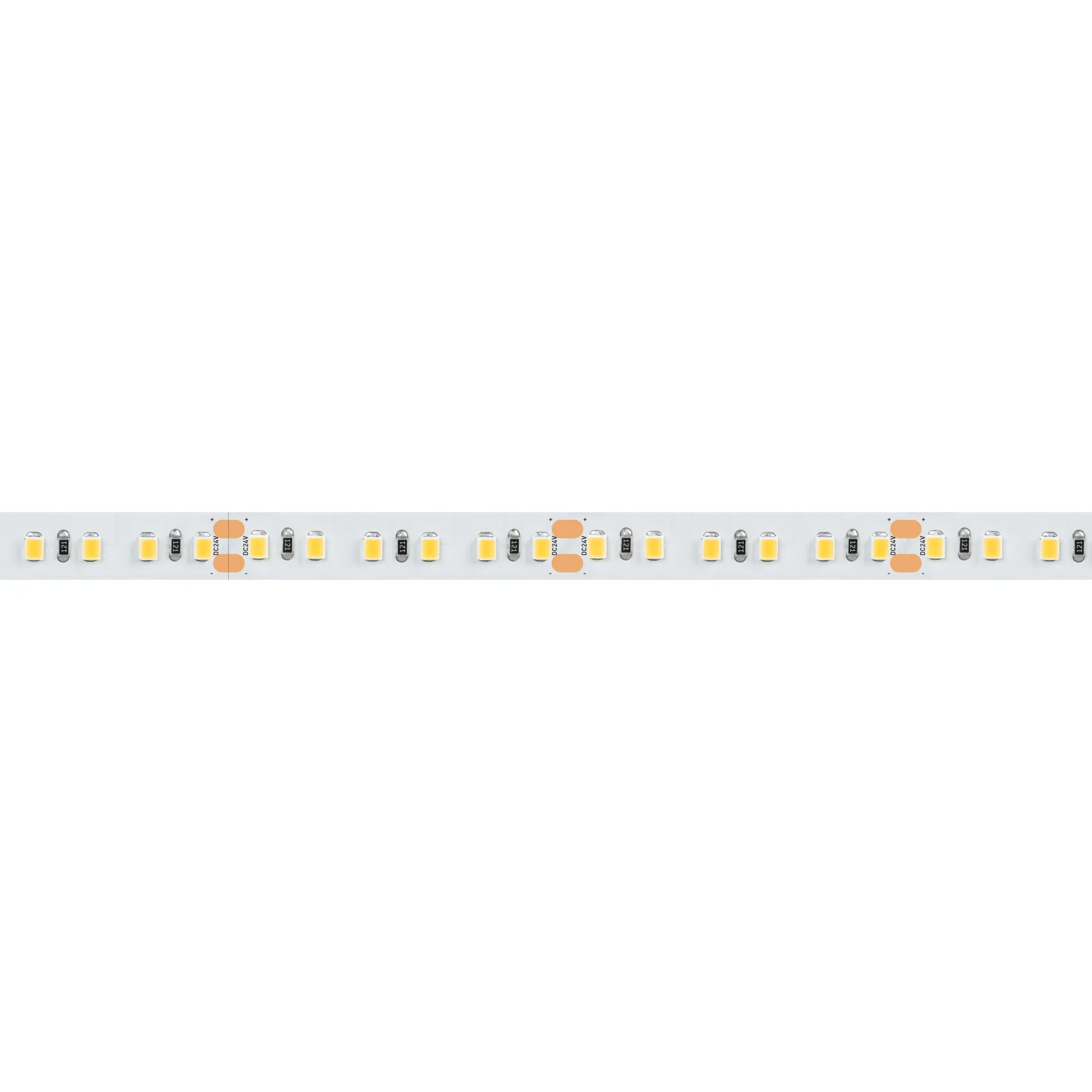 Гибкая лента повышенной прочности TWIST , светодиоды smd 2835,120шт/м (600шт на 5м), белая плата 10мм, скотч 3М. Цвет ТЁПЛЫЙ 2600-2800K. Питание 24V, мощность 10 Вт/м (50 Вт на 5м), угол 120°, цветопередача CRI>90. Размеры 5000х10x1.5мм. Мин.отрезок 50мм, 6шт светодиодов. Пакет 5м. Цена за 1м.