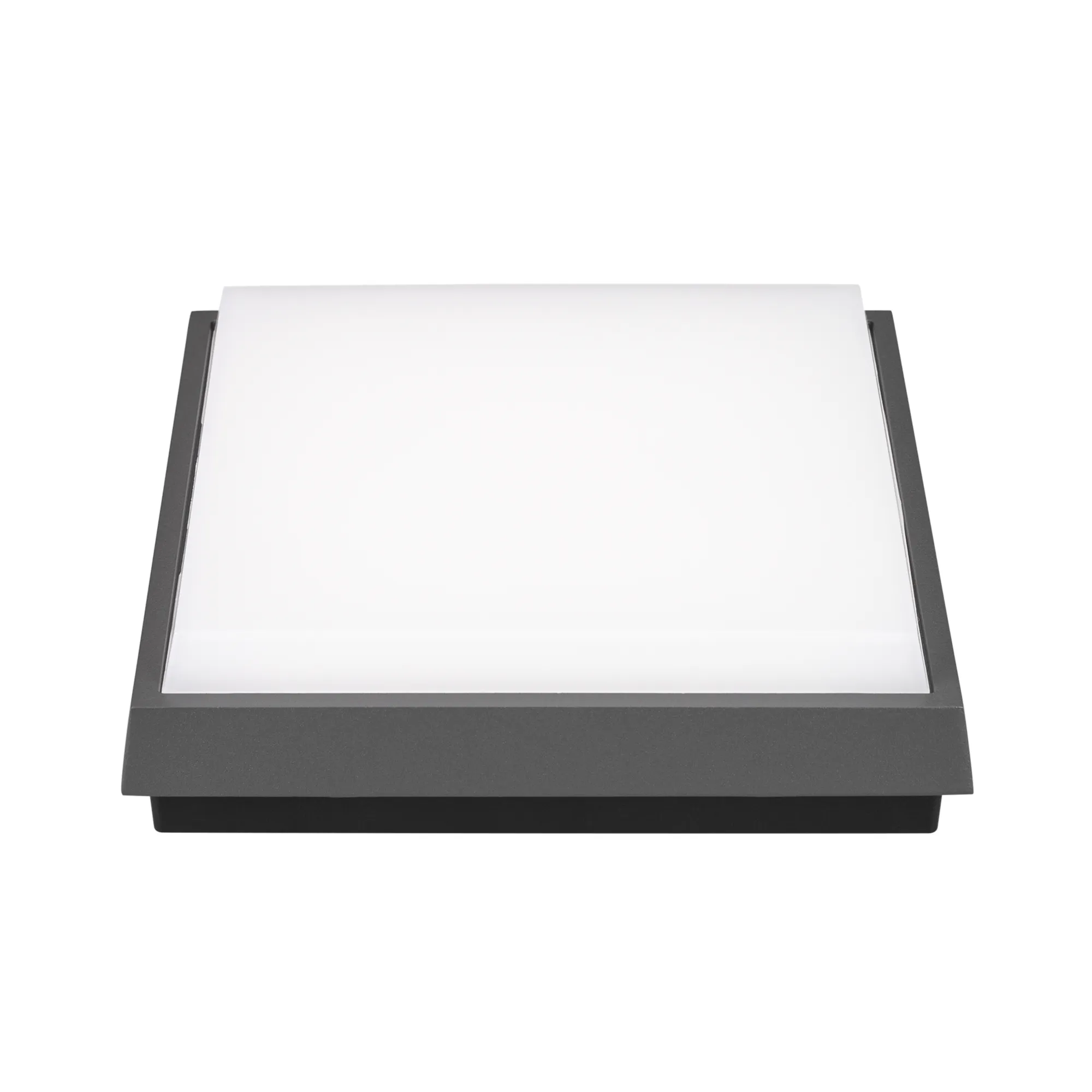 Накладной светильник 10Вт, серый алюминиевый корпус, матовый рассеиватель из поликарбоната. Цвет ДНЕВНОЙ БЕЛЫЙ 4000K, св.поток 790лм, CRI(Ra)>80, угол 110°. Размер 175x175x45мм. IP54. Питание AC220-240V, 10Вт, встроенный драйвер.