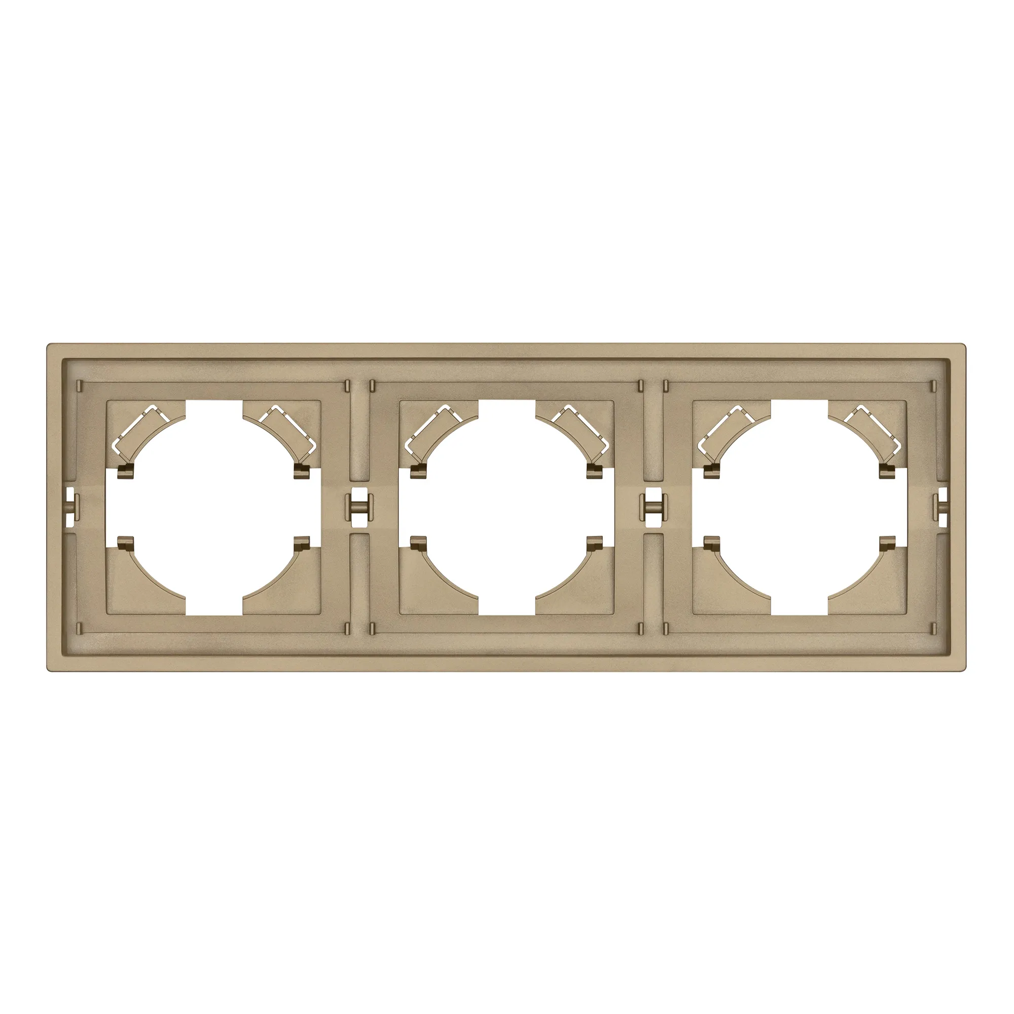 Рамка пластиковая на 3 поста, под встраиваемый механизм. Цвет - матовый песочный, с Soft-Touch покрытием. Уровень герметичности IP20. Ориентация монтажа горизонтальная.